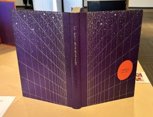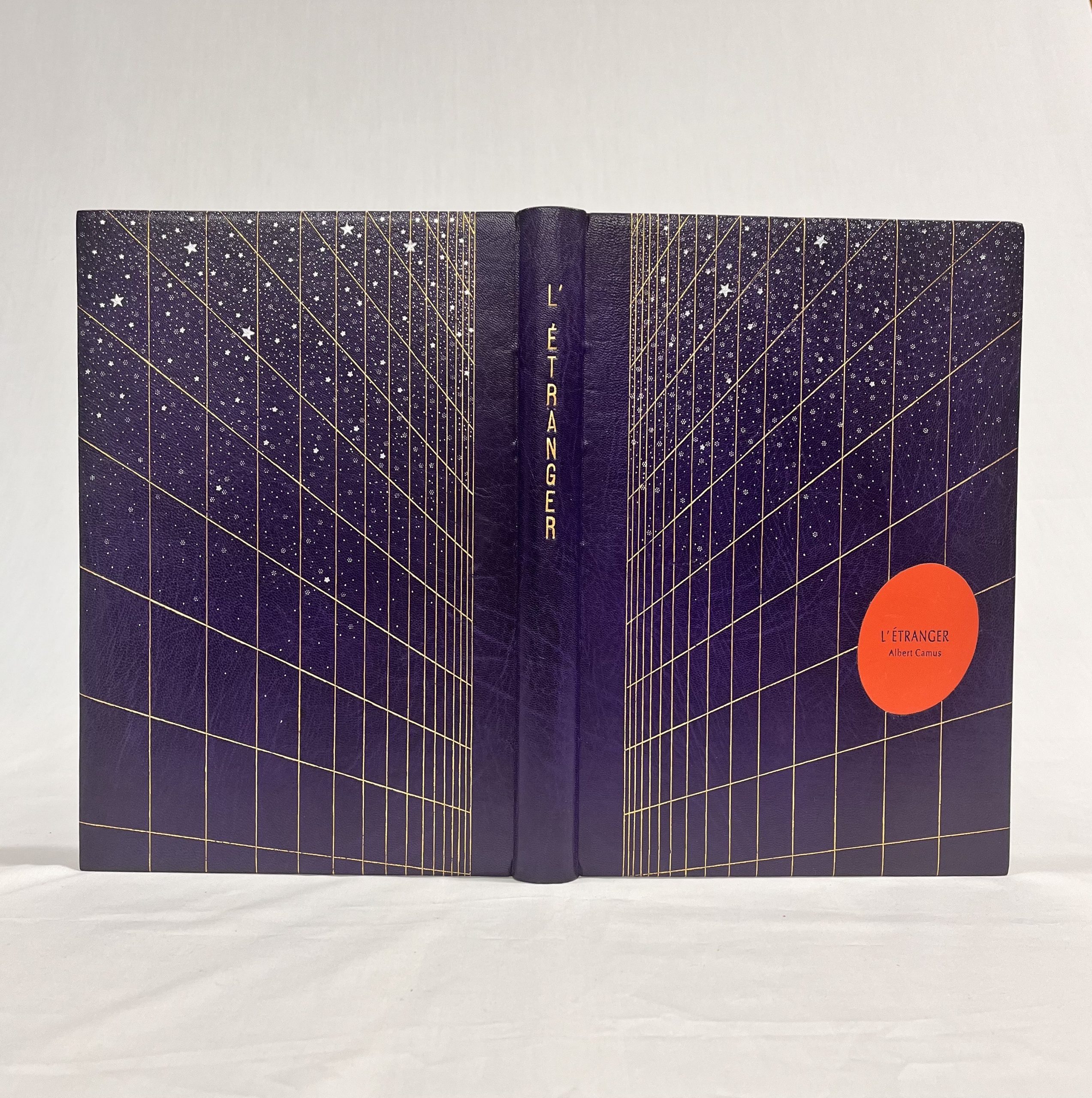 第15回フランス国際芸術製本ビエンナーレに出品、本文はフランス語の小説 パッセカルトンは本が完成してからデコールなどの装飾をするため、丸い背にタイトルを直接押すという難関があります 三方金やドリユールの勉強になった1冊です 金線は牢屋をデザイン化しました スリップケース付き