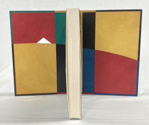 第8回フランス国際芸術製本ビエンナーレに出品し、2位を受賞した作品 本文は、フランス語の小説なので、和訳本を読んでイメージを装丁した 表紙は5色の革で5大陸を現し、小さな革のピースは1〜79番までの数字を空押しして80の形にした 80番だけ見返しに押して謎めかした 自作のペーストペーパーと革でケースも作る