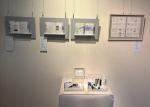 物語の内容から、ヤシの木の木陰で拾った本を想像して制作。 島に元いた住民が、何らかの方法で本を作り置いたのだと思う。