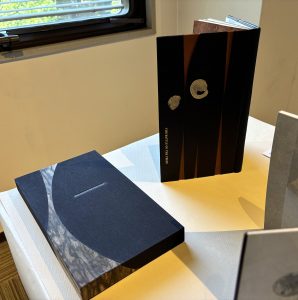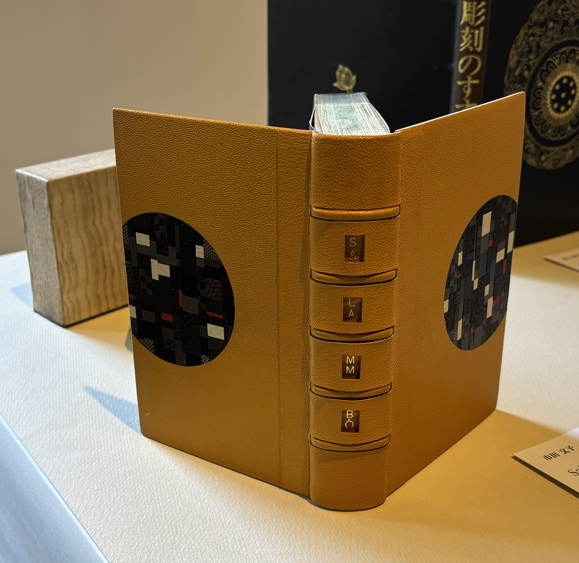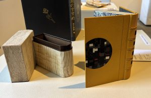 二重背バンド 各種革のインレイ 印籠式箱 箔押し:中村美奈子