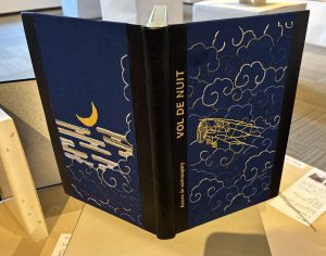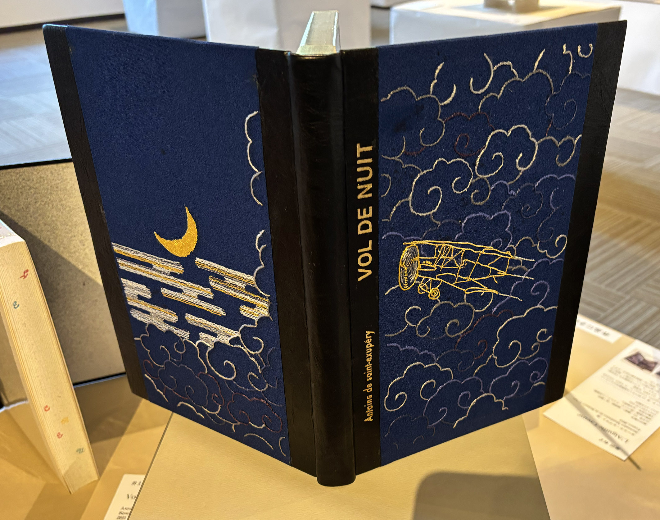 表紙は絹地に絹糸で雲、飛行機、月などを表現した。