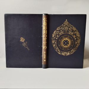 見返しは黒い和紙に截金で装飾、花布は絹糸で手編み