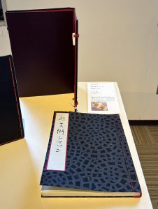 本にできないかと考え、折本に作ってみました。見返しには料紙装飾の技法である継ぎ紙