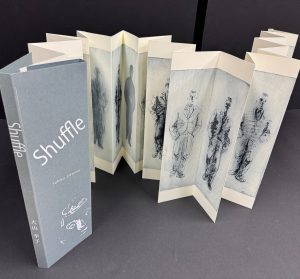 細長く折り畳む本の形式にして、変幻自在に広がるそれらの意外性を楽しみたい。