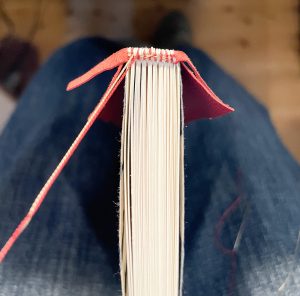 辞書のような「製本用語集」を目指した。中学の時に使っていた国語辞典の表紙が真っ赤だったことが印象に残っており、楽しく用語が引けるよう、ポップなイメージで制作している。表紙の一部がしおりの役割も果たしてくれるイスラム製本で仕上げた。